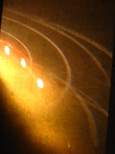 This afternoon I’ve been working on a new piece and have been working through several problems. I’ve been coming and going from my work table all afternoon and have enjoyed the changing light patterns in the next room. The patterns are created by the sun shining though a stained glass window.